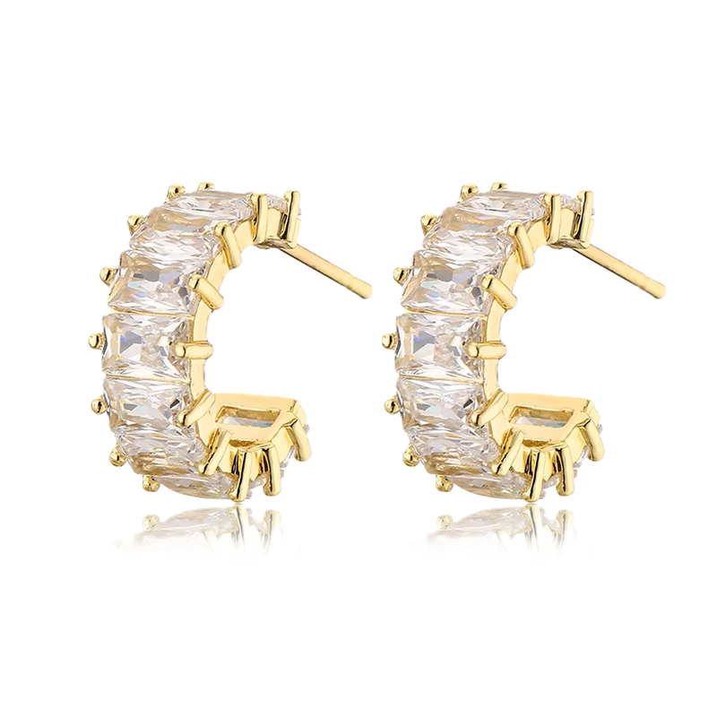 A dazzling addition to your jewellery box, these small baguette cut hoop earrings are the ultimate in glamorous sparkle.