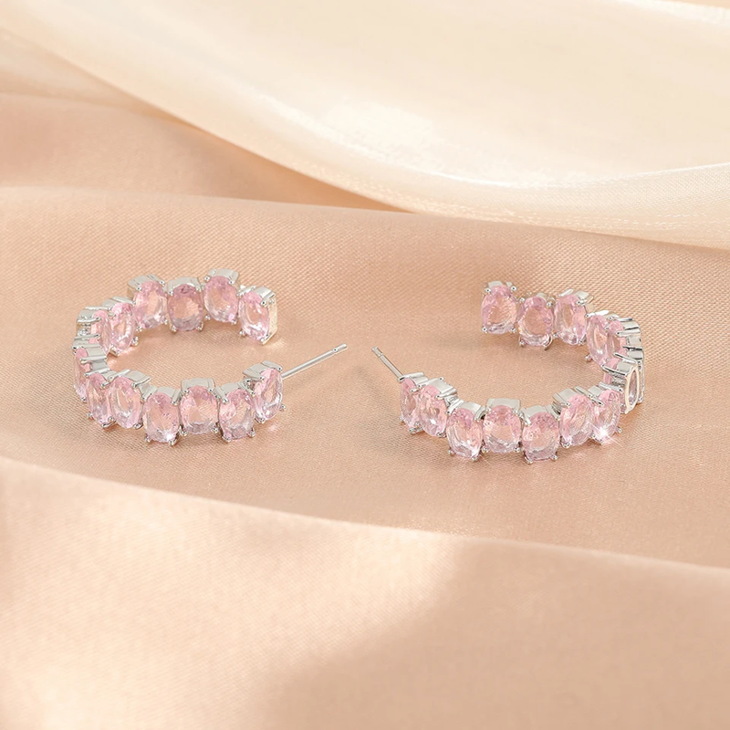 HAYWORTH - Oval Cut C Shaped Hoop Earrings